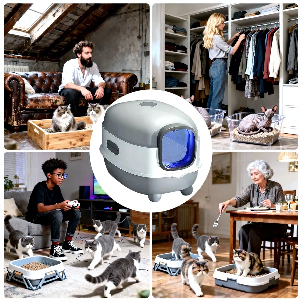 Idéal pour les appartements et maisons où l’espace est limité. Utilisable quotidiennement pour maintenir la propreté de la litière, particulièrement adapté aux environnements multi-chats ou aux propriétaires cherchant une solution hygiénique pratique.
