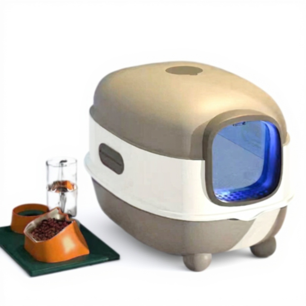Ce bac à litière innovant intègre une lampe UV-C pour désinfecter et éliminer les pathogènes, tout en offrant un système auto-nettoyant pratique. Sa structure fermée et son design universel assurent une utilisation sans stress pour les chats de tous âges.