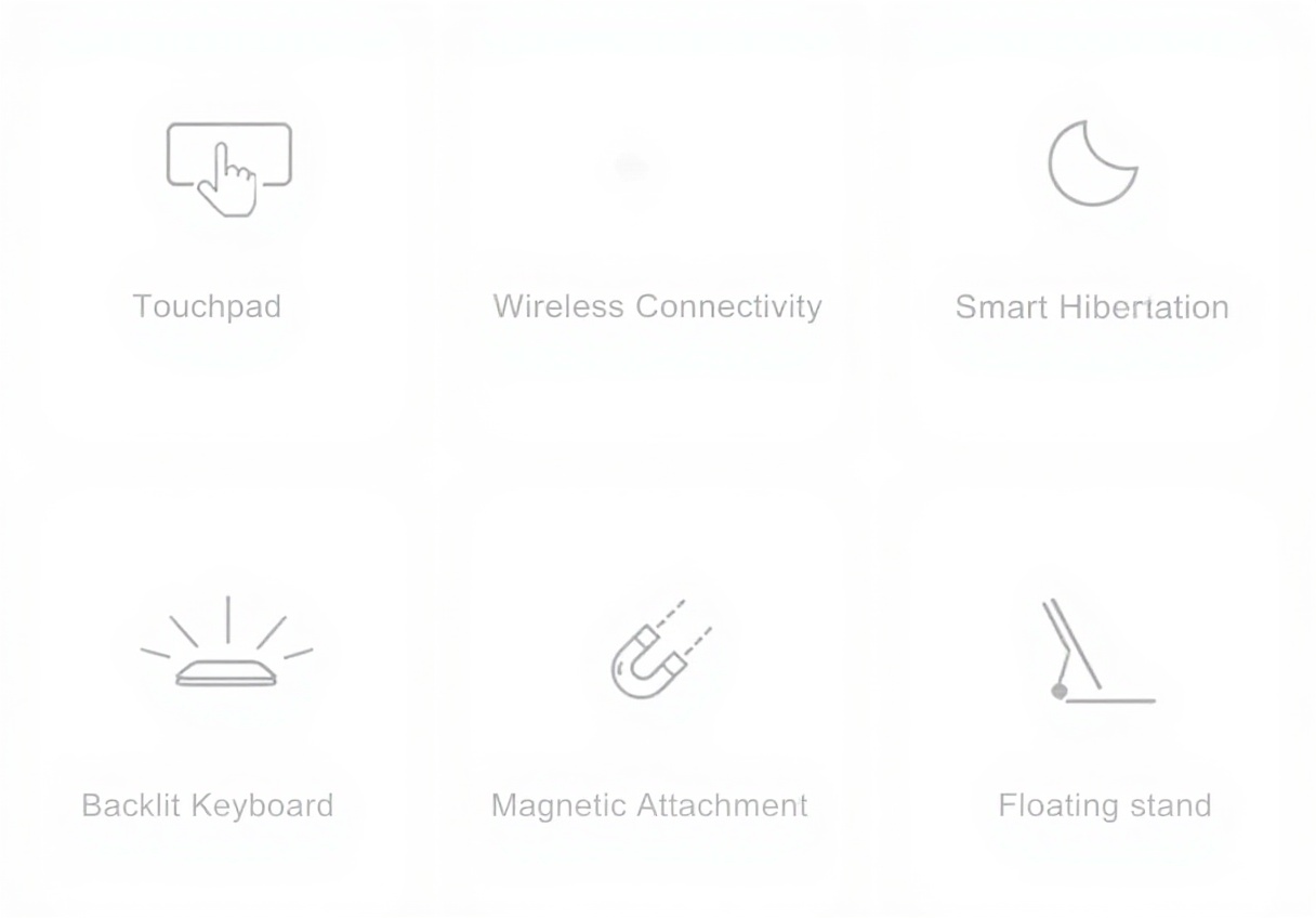 Ce boîtier clavier Dpofirs intègre un pavé tactile magnétique rechargeable avec des matériaux de qualité. La structure en TPU flexible protège la tablette, tandis que les aimants puissants assurent une fixation stable. Le design silencieux et le support flottant ajustable améliorent l’expérience utilisateur.