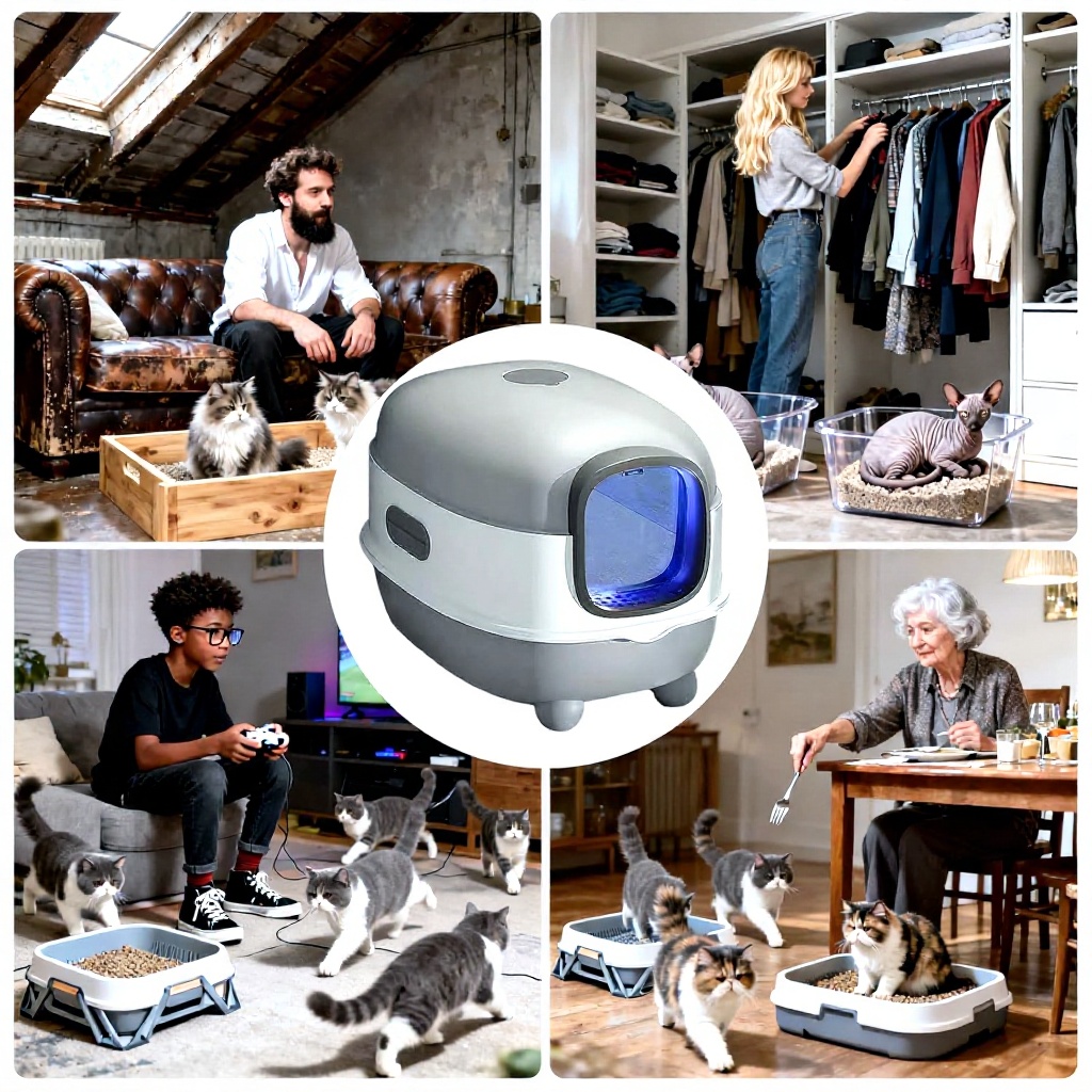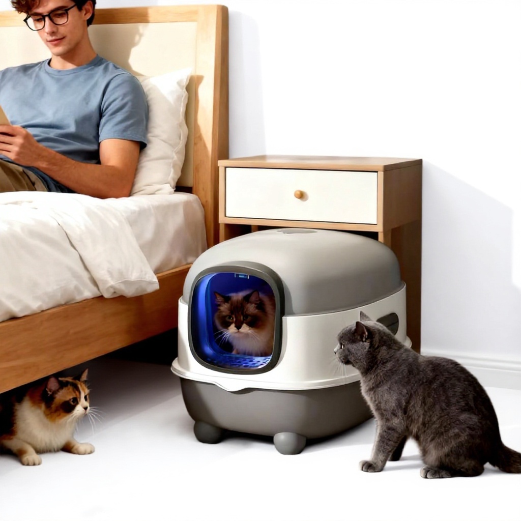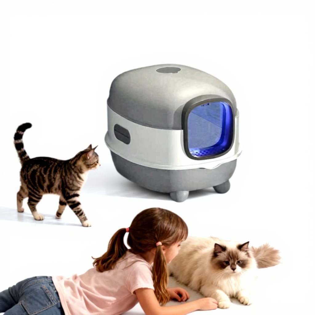 Idéale pour les appartements et maisons où l’espace est limité, cette litière s’intègre discrètement dans les coins ou les pièces dédiées aux animaux. Son fonctionnement silencieux et son design épuré la rendent parfaite pour les environnements urbains où l’hygiène et l’esthétique sont prioritaires.