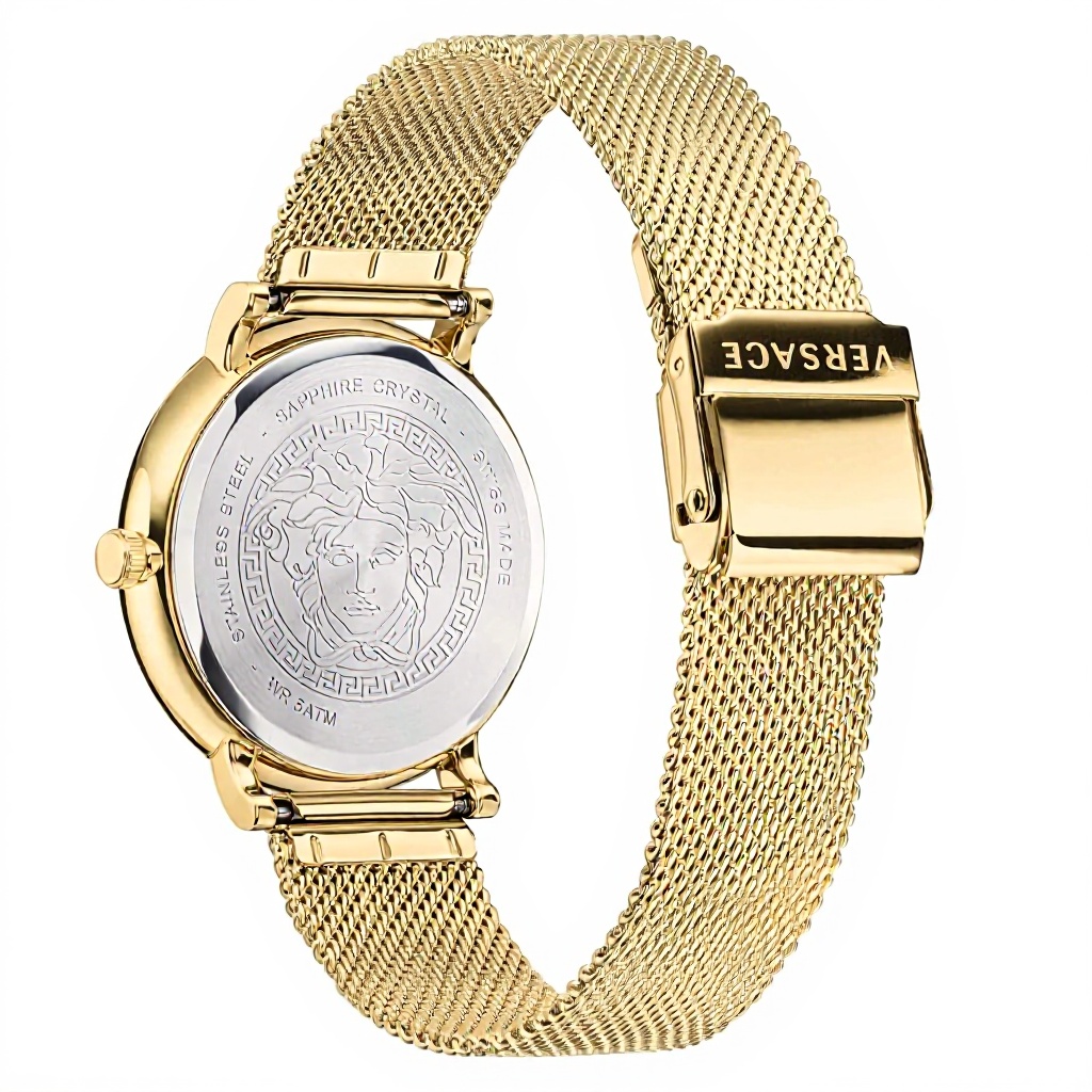 Cette montre analogique Versace se distingue par son mouvement à quartz précis, garantissant une fiabilité optimale. Le boîtier et le bracelet sont fabriqués en acier inoxydable or jaune, offrant durabilité et un style raffiné. Le verre saphir protège le cadran des rayures, tandis que l’étanchéité jusqu’à 50 mètres assure une utilisation en conditions humides.