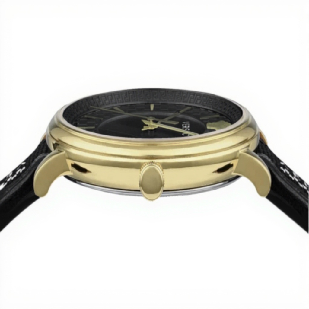 La collection V-Circle Greca Edition par Versace incarne l’alliance parfaite entre le design iconique de la marque et le savoir-faire horloger suisse. Cette montre de luxe se distingue par son boîtier audacieux de 42 mm de diamètre, son cadran Sunray élégant et son mouvement à quartz suisse à trois aiguilles garantissant une précision exceptionnelle. Le cristal saphir antireflet protège le cadran tout en offrant une lisibilité optimale en toutes conditions.