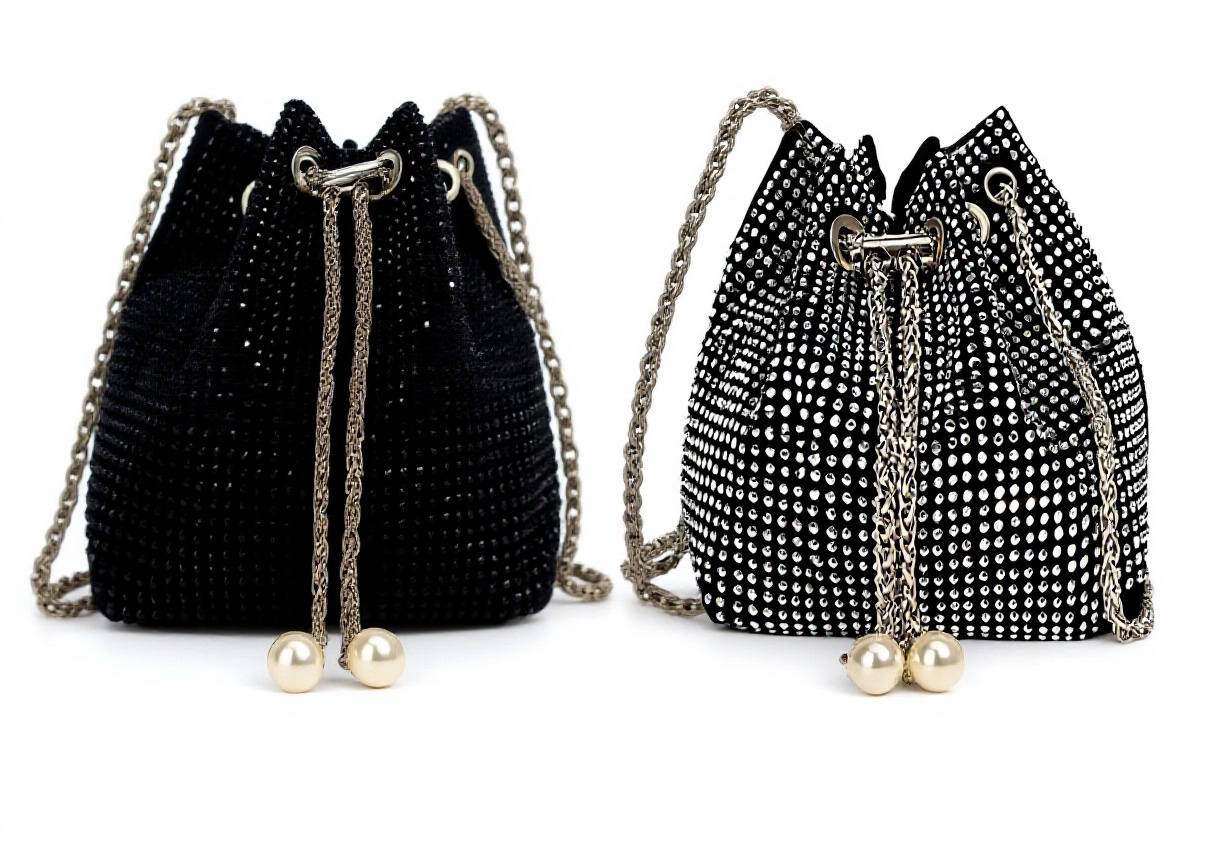 Un nettoyage à sec est recommandé pour préserver le matériau brillant et les perles. Évitez l’exposition prolongée au soleil et les produits abrasifs.