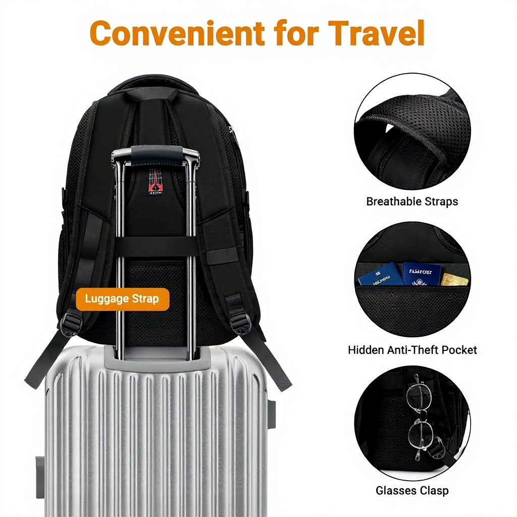 Ce sac à dos ZYB combine durabilité et fonctionnalité avec une conception extensible qui augmente la capacité de 34L à 44L. Il intègre une poche anti-vol discrète, un compartiment indépendant pour chaussures et un trou écouteur externe pour un accès facile aux câbles. Les bretelles et le dos en maillage respirant assurent un confort optimal lors des déplacements prolongés.