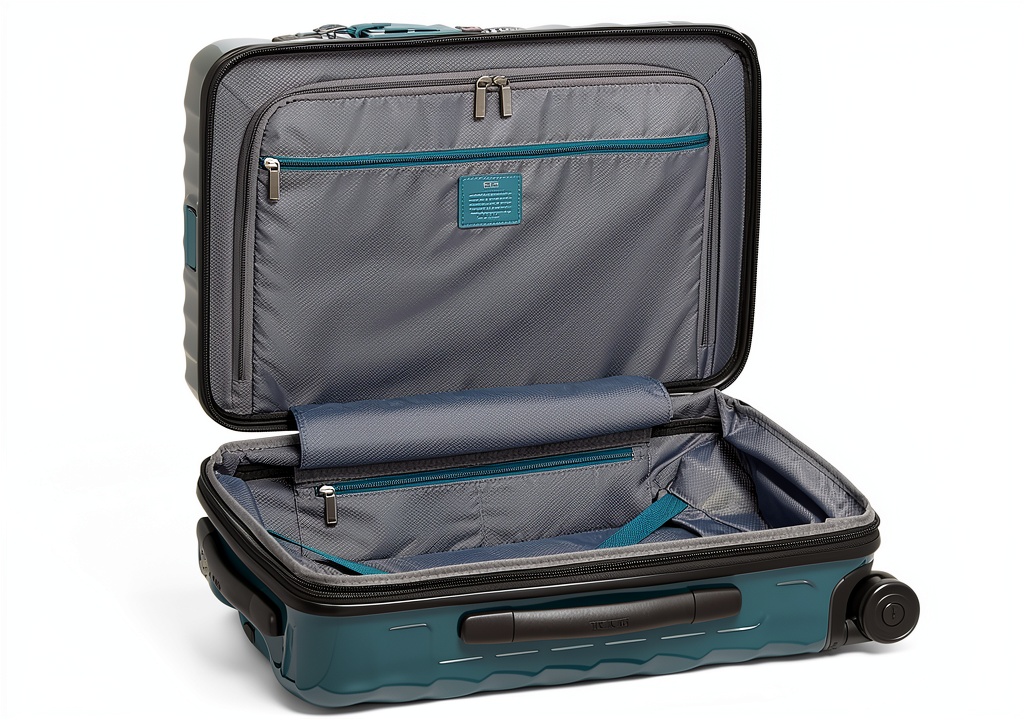 La valise à 4 roues extensible internationale TUMI à 19 degrés est un bagage cabine conçu pour les voyageurs exigeants. Fabriquée avec des matériaux durables, elle offre une capacité d’emballage optimisée grâce à son compartiment principal zippé, une extension zippée supplémentaire et des sangles de compression. La structure légère assure une maniabilité exceptionnelle, tandis que la poignée télescopique à 3 niveaux et les 4 roues rotatives garantissent un déplacement fluide dans les aéroports et gares. Ce modèle en bleu lagon, de taille unique, intègre un verrou intégré à profil bas pour la sécurité et un port de charge USB-C pour la commodité.